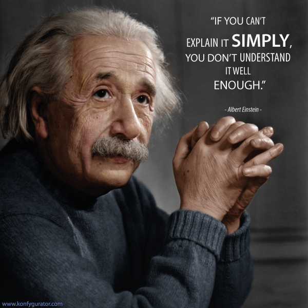 Great Mind - Albert Einstein Dec 4, 2015 in Quotes Albert Einstein Share on Facebook Share on Twitter Share on Google + Fields: physics, philosophy photo A Wise Man Once Said "If you can't explain it SIMPLY, you don't understand it well enough." - Albert Einstein -